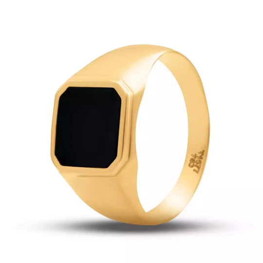 انگشتر طلا مردانه با میناکاری مشکی انگشتر نگین دار
